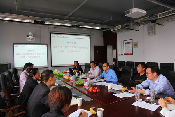 2016年5月18日上午9点,安徽庆余投资管理有限公司执行总裁方海霞一行高管来学院交流,永利官网院长吴华清、副院长晋盛武、张先锋以及各系主任在学院723会议室进行了接待。吴华清院长首先代表yL23411永利官网登录对方海霞总裁一行的到来表示欢迎,随后双方商讨决定合作举办“湖滨金融论坛”,并就论坛主题、地点、流程等细节问题进行了深入细致的讨论,形成了初步方案。双方还就共建“量化金融实验室”、成立实习基地等合作事项进行了沟通和交流,并在人才培养、学科专业建设等方面开展立体式合作达成了共识。