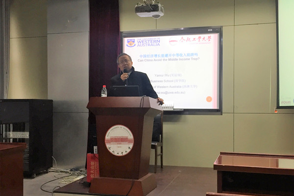 2016年12月13日上午9点,我校特聘教授、澳大利亚西澳大学吴延瑞教授在翡翠湖校区逸夫建筑艺术馆703为永利官网学子做《中国经济增长能避开中等收入陷阱吗?》的学术报告。永利官网老师以及研究生参加本次报告会。