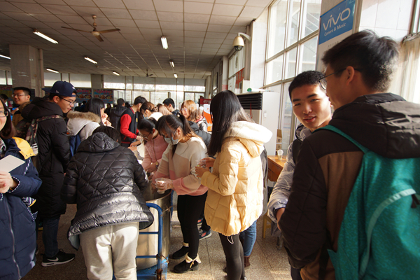 活动前期,两班主要负责人开会研讨具体流程,并与食堂经理和南苑超市奶茶店老板进行沟通,活动得到了他们的大力支持,食堂经理为活动提供场地和用具,奶茶店老板为活动提供杯子和袋子,前期安排一切顺利。
