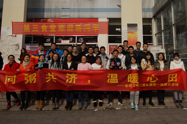 12月14日中午,yL23411永利官网登录2016级国际经济与贸易一班和金融工程二班在yL23411永利官网登录翡翠湖校区三食堂举行了“同‘粥’共济,温暖心田”义卖活动,本次活动旨在班助残疾儿童——用义卖收入为阳光至爱康复中心的孩子们送去温暖的围巾,给予关怀和爱心。