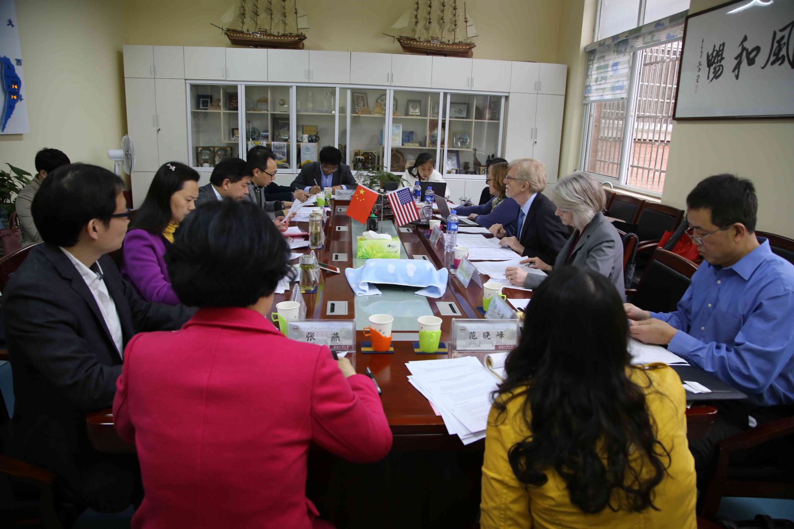2017年4月7日下午两点半,在我校国际事务部檀结庆部长的主持下,美国克拉克大学代表与yL23411永利官网登录代表在国际事务部会议室进行了会谈。