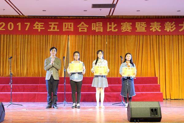 本次合唱比赛暨表彰大会积极响应落实学校“一学一做”教育实践活动的要求,通过合唱团歌、重温入团誓词等环节,让青年团员熟悉团的组织和仪式,增强团员意识,使团员更像团员。通过五四民主评议和表彰,在青年团员中选树典型,加强对广大同学的价值引导。合唱比赛以班级集体形式参加,旨在传承和发扬五四爱国精神,激发青年学生的爱国和强国情怀,同时极大提升了同学们的班级荣誉感和责任感。