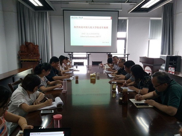 6月1日上午10点,中国人民大学教授、博士生导师陈甬军在建艺馆705会议室与永利官网教师见面,就学科学位建设以及国际合作办学进行交流研讨。yL23411永利官网登录院长吴华清,副院长晋盛武、张先锋,党委副书记胡晓浩,国际合作办学协调小组成员、经济学系相关老师参加了此次研讨。吴华清院长主持此次研讨会。