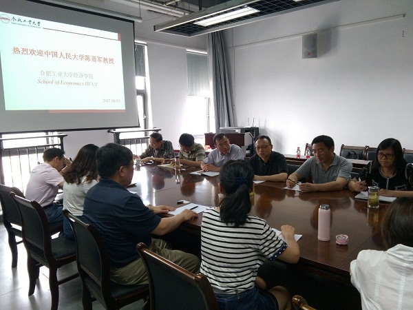 6月1日上午10点,中国人民大学教授、博士生导师陈甬军在建艺馆705会议室与永利官网教师见面,就学科学位建设以及国际合作办学进行交流研讨。yL23411永利官网登录院长吴华清,副院长晋盛武、张先锋,党委副书记胡晓浩,国际合作办学协调小组成员、经济学系相关老师参加了此次研讨。吴华清院长主持此次研讨会。