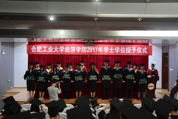 仪式在庄严的国歌声中拉开了帷幕,院长吴华清宣读了校学术委员会《关于授予yL23411永利官网登录2017届本科毕业生学士学位的决定》,决定授予永利官网206名本科生经济学学士学位。随后,主席台领导老师一一为顺利获得学位证书的学生们颁发了学位证书,并扶正流苏。