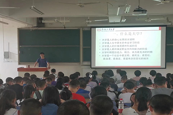 8月27日上午9点,2015级辅导员但泱泱老师主讲《大学生新生导航》。在本次入学教育中,她系统地从大学精神是什么及如何建立等方面,引经据典,为2017级的新生们上了一堂生动幽默的“心理健康课”,让新生们知道了在大学实现理想应该具备的精神及完成梦想的毅力。大家热情高涨,并对自己的未来充满希望。