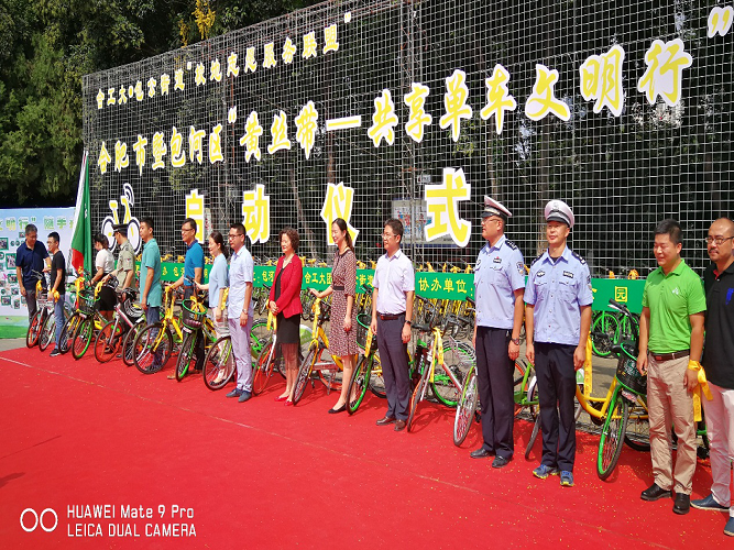 上午10时,合肥市包河区文明办宣读《包河区“黄丝带•共享单车文明行”志愿服务活动行动方案》标志了活动的正式开始。随后,来自合工大的志愿者代表宣读志愿服务活动倡议书,文章批判了人们在骑行过程中无序摆放、无序养护、无序管理等问题,倡议全市人民文明骑行,共建和谐社会。紧接着,社区居民代表宣读致居民的一封信并由ofo、摩拜、酷骑、享骑四家单车城市经理发布《合肥市共享单车企业自律公约》,此公约传达出四家共享单车企业对加强单车的有序管理有了一个共同的目标,表达了他们共建文明社会的集体意愿。志愿者们全程认真聆听,积极响应领导们和代表们的号召。宣读完毕后,各嘉宾领导为共享单车绑扎此次活动的标志黄丝带。最后,“斛兵青年帮客联盟”、“黄丝带志愿服务队”授旗并出征,两种队旗交相呼应,一起向文明进发!