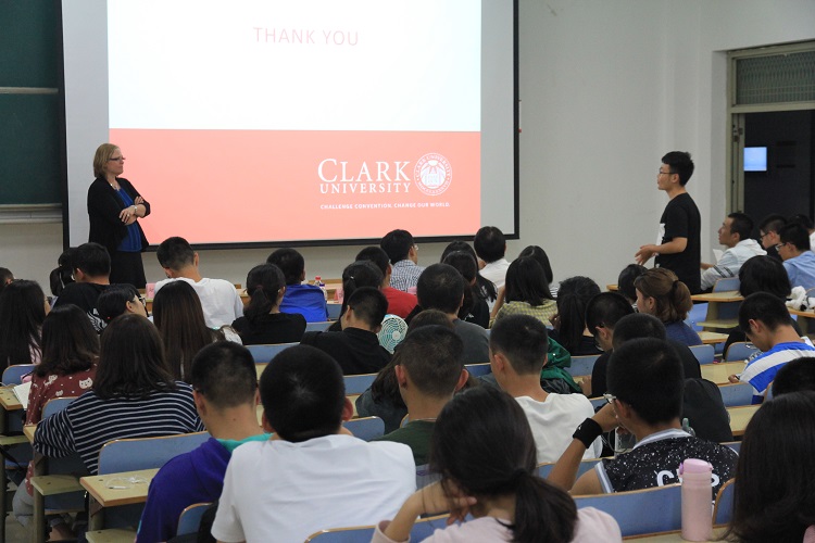 2017年9月20日晚上八点,美国克拉克大学国际项目副院长Amy Daly Gardner与国际经济与贸易(中外合作)专业学生在3教306教室举行见面会。