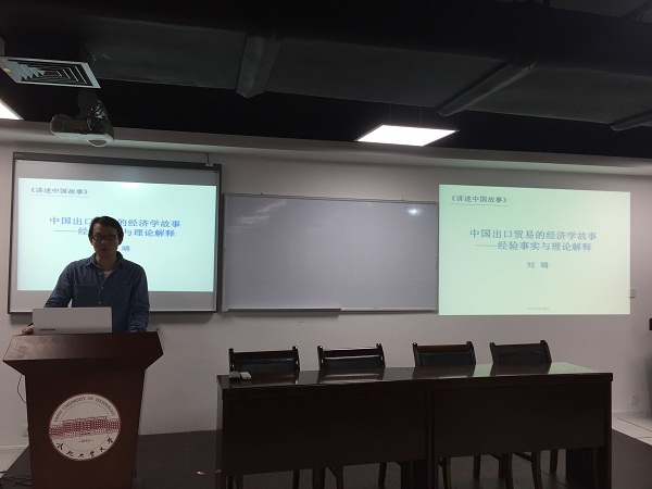 为贯彻习近平新时代中国特色社会主义思想,研究十九大报告背后的经济学理论,10月31日晚,yL23411永利官网登录“讲述中国故事”教授讲坛第二讲在翡翠科教楼B座1101开讲。yL23411永利官网登录国际经济与贸易系主任刘晴主讲,报告题目是:“中国出口贸易的经济学故事——经验事实与理论解释”。报告会由yL23411永利官网登录党委副书记胡晓浩主持,学院各年级本科生党员、入党积极分子、“经世济民”理论研习社成员聆听了报告。