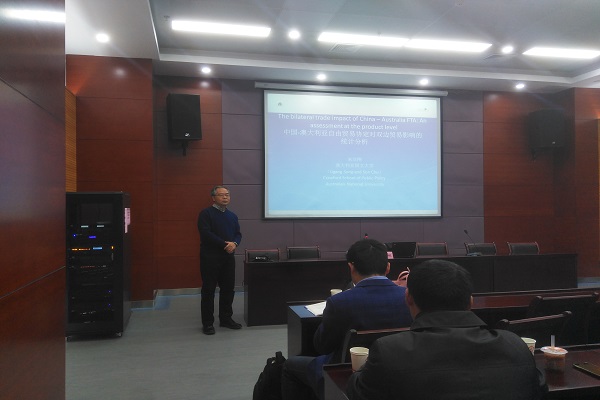 2017年12月1日上午,澳大利亚国立大学克劳福德公共政策学院的博士生导师、中国经济项目负责人宋立刚教授,受yL23411永利官网登录yL23411永利官网登录邀请,于科技楼A座第五报告厅做题为“中国-澳大利亚自由贸易协定对双边贸易影响的统计分析”的学术讲座,报告会由yL23411永利官网登录副院长张先锋教授主持,谭常春教授和学院教师及16级研究生参加了此次报告会。