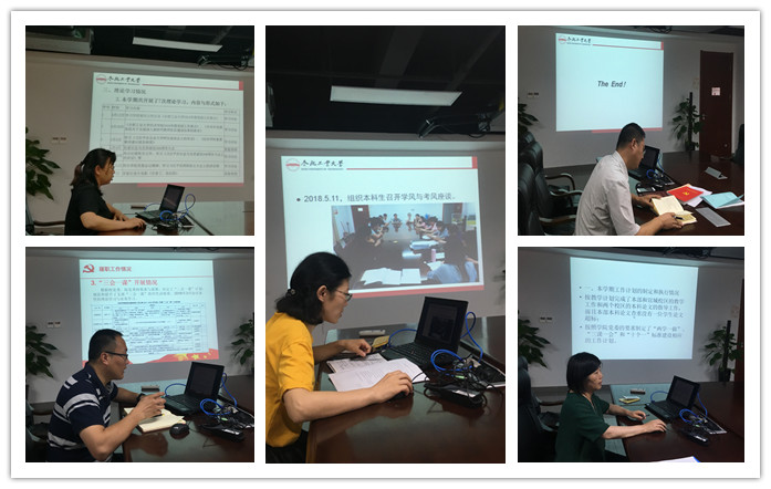 各位教工支部书记就本支部的学期工作计划制定和执行情况、理论学习情况、三会一课制度落实情况、十个一标准建设情况、师德师风建设和纪律执行情况、存在的问题和分析等方面进行了汇报。刘峰书记和晋盛武副院长对汇报进行了一一点评,对党支部的工作作出了肯定,同时指出了要加强支部学习的考勤、记录以及学习效果的检查;进一步发挥支部委员会的作用;按照要求开展讲党课活动;充分发挥教工党支部的战斗堡垒作用和广大教职工党员的先锋模范作用。党建组织员卢勇老师用自己丰富的党务工作经验对 教工党支部如何做好党建工作做了指导。