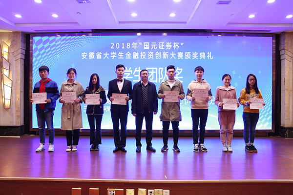 11月7日下午,第三届“国元证券杯”安徽省大学生金融投资创新大赛颁奖典礼在蚌埠落下帷幕。永利官网张本照教授受邀参加颁奖典礼并为获奖人员颁奖。