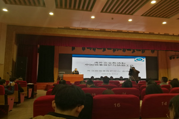 活动邀请外交部领事保护中心负责人赵海涵为广大师生做了一场名为《海外安全形势和中国领事保护与协助工作》的讲座,他从政治局势、自然灾害、公共卫生、意外事故和公民自身原因等方面,通过具体案例详细为师生们介绍了近年来发生的各类领保案件。
