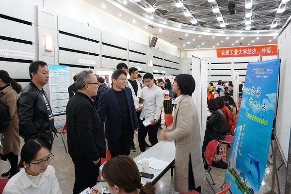 3月19日上午,我校经济、外语、思政类2019届毕业生“精准就业”双选会在翡翠湖校区综合楼301宣讲厅举行。本次双选会邀请了安徽轻工国际贸易股份有限公司、安徽省技术进出口股份有限公司、安徽省安粮集团有限公司、渤海银行、中信证券、安信证券、华普天健会计师事务所、北京学而思科技教育有限公司、合肥新东方外语培训学校等49家企业参会,招聘岗位涵盖经济类、金融类、国际贸易类、管理类、英语类、政治学类、统计学类等多个专业,为我校应届毕业生提供1900多个就业、实习岗位。