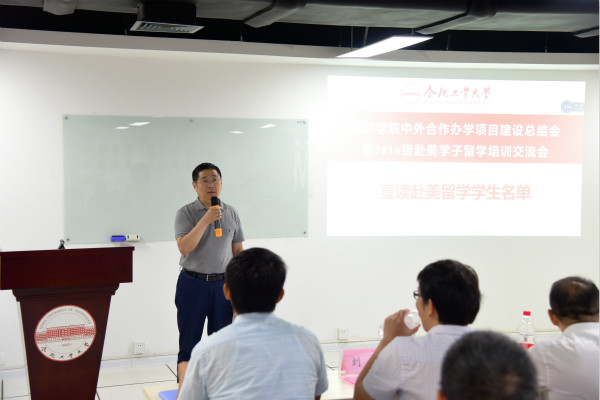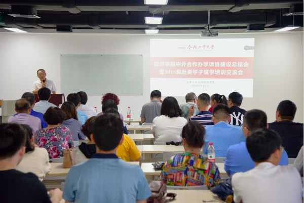 7月7日,yL23411永利官网登录中外合作办学项目建设总结会暨2016级赴美学子留学培训交流会在翡翠湖校区科教楼B座1004国际文化交流室顺利举行。yL23411永利官网登录院长吴华清、党委书记李金华、党委副书记胡晓浩,师生代表及赴美国克拉克大学留学学生和家长代表等参加会议,会议由学院国际教育中心主任庄德林主持。