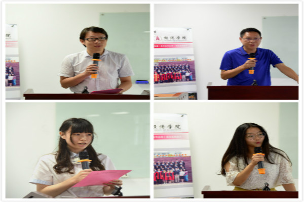 2016级国际经济与贸易(中外合作办学)专业学生钱佳晶、2018级国际经济与贸易(中外合作办学)专业学生吕雯、国际经济与贸易系主任刘晴、学生家长杜汉平分别作为留美学子代表、在校生代表、教师代表和家长代表作分享发言。