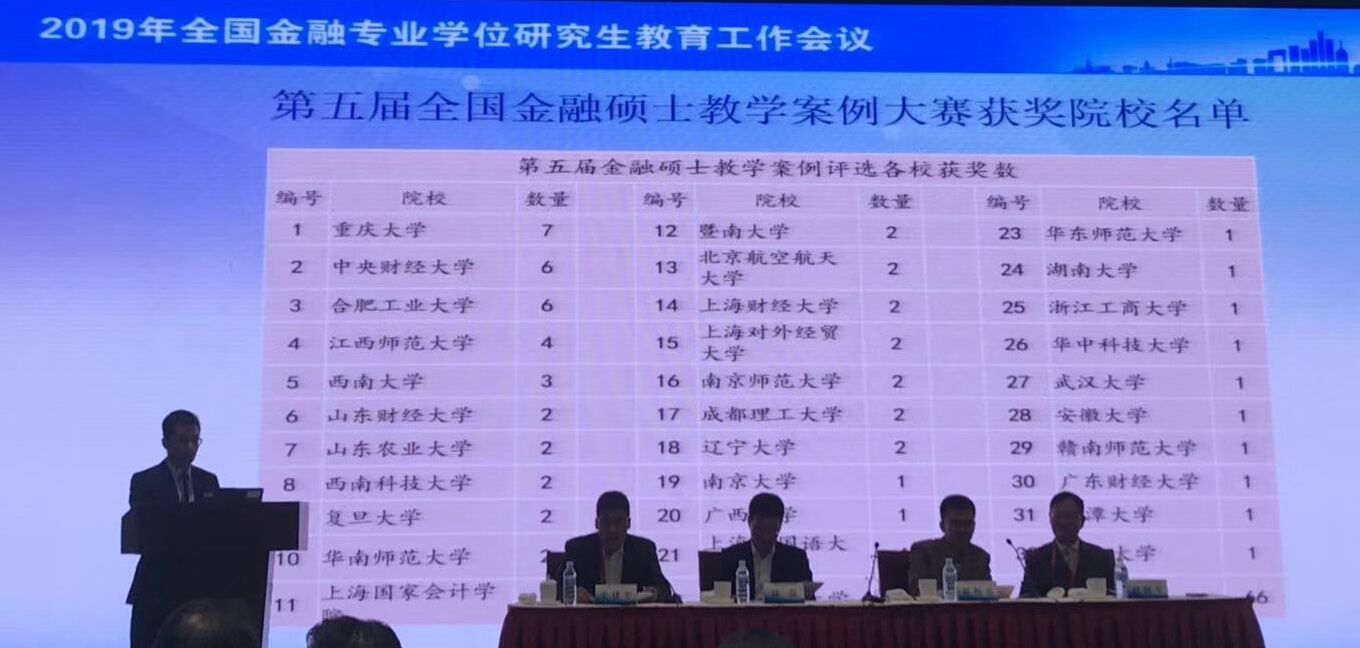 全国金融硕士教学案例大赛是全国金融专业学位研究生教育指导委员会组织的教学案例评奖,是目前全国金融专业硕士研究生教学案例的最高奖项,获奖案例将进入金融教指委中国金融专业学位案例中心。此次比赛共有来自全国各高校参赛作品328篇,评选出获奖教学案例66篇。