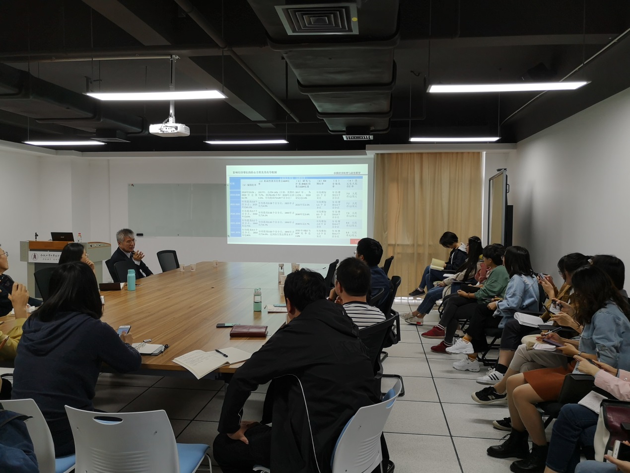 报告会上,李平研究员首先回顾了中国经济40年长期稳定高速增长,一跃成为世界第二大经济体的历程;然后指出中国经济长期受高强度的投资驱动,带来投资效率低下,产能严重过剩,拉动GDP增长的三驾马车全部失速,粗放型发展路径难以为继的迫切问题。为破解这一难题,实现经济的转型与高质量发展,中国急需转换发展动力,由要素驱动转向创新驱动,实施供给侧结构性改革,提高全要素生产率。报告结束后,李平研究员就该主题与现场的教师与学生进行了互动交流。