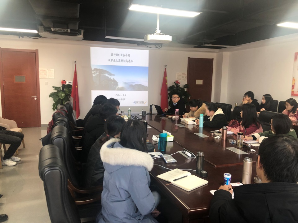 2019年12月7日上午,在yL23411永利官网登录翡翠湖校区翡翠科教楼B座1208会议室,国元证券投资银行总部高级项目经理吴健应邀来院交流,以“新监管政策背景下IPO实务及未来发展趋势”为主题给同学们做了精彩报告。
