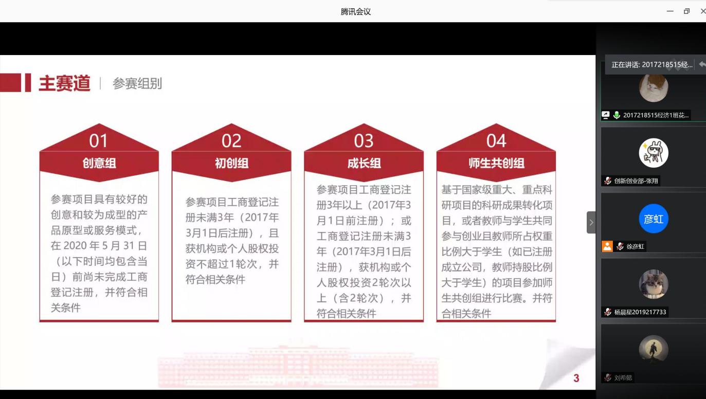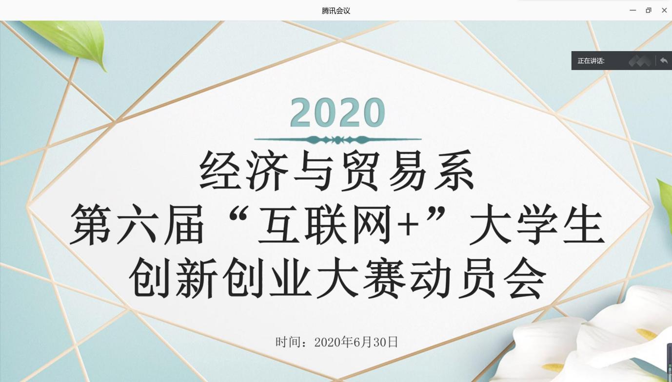 为了进一步增强学生创新创业能力,提高参加“互联网+”大学生创新创业大赛的积极性,6月30日下午4时,永利官网经济与贸易系线上组织召开了第六届“互联网+”大学生创新创业大赛动员会,系主任黄顺武老师、系团总支书记刘银红老师及辅导员夏芬老师均参加了本次动员会。