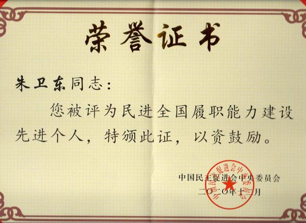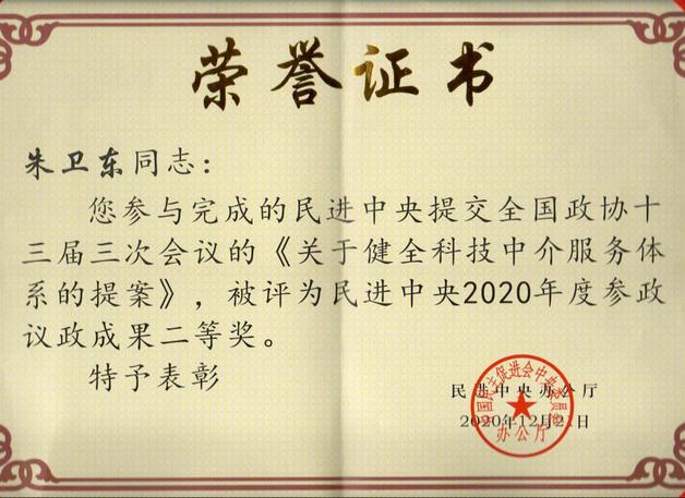 近日,我校民进基层委员会主委yL23411永利官网登录朱卫东教授荣获民进中央委员会评选的民进全国履职能力建设先进个人称号。同时,他参与完成的民进中央提交全国政协十三届三次会议的《关于健全科技中介服务体系的提案》,被评为民进中央2020年度参政议政成果二等奖。
