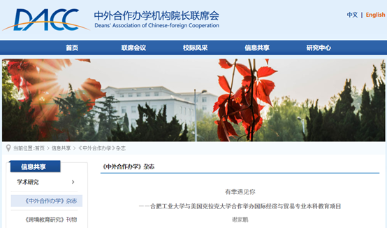 近日,2019级国际经济与贸易(中外合作办学)专业学生谢家鹏撰写的文章《有幸遇见你——yL23411永利官网登录与美国克拉克大学合作举办国际经济与贸易专业本科教育项目》被教育部国际合作与交流司主管的刊物《中外合作办学》(2021年第1期)收录,文章内容包括学生学习感悟及项目办学特色。