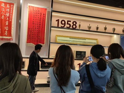 在参观之前,团支书提出了三个问题:“校史馆中什么让你感触最深?老一辈工大人哪些地方值得我们学习?如何传承‘工业报国’之志,做新时代工大人?”团员们带着问题来到校史馆。支部委员带领成员,沿着时间线,仔细参观了校史馆的事业初创、跃升重点、改革前行、创新发展、硕果累累和校友风采六个展厅。校史馆内精美的建筑结构、丰富的历史资料、高科技的展现手段,让团员们真切地感受到了学校76年来走过的峥嵘岁月。参观过程中,支部成员们带着问题思考,积极交流讨论,为学校的光辉历程和深厚的文化底蕴感到骄傲和自豪,理解了作为新时代工大人肩负的使命与担当。