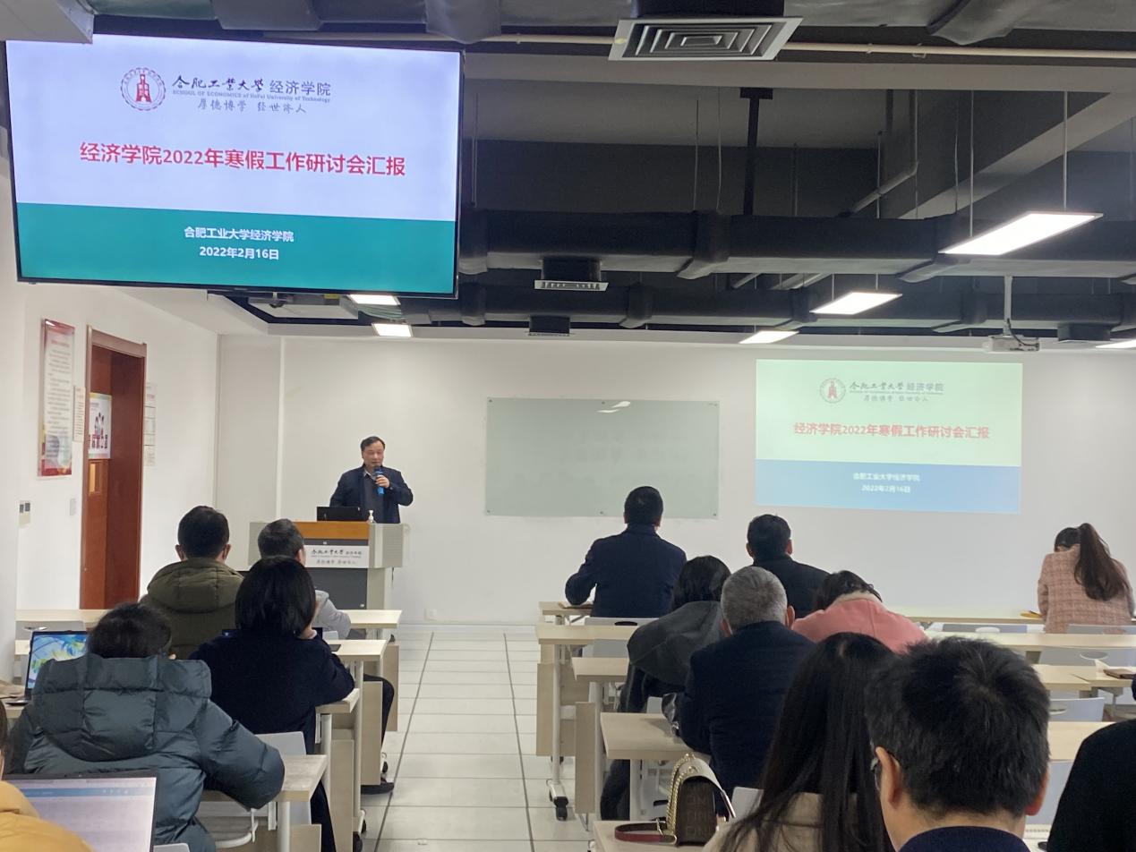 院长洪进传达了学校寒假工作研讨会召开情况和会议精神,并从一流本科专业建设、新文科经济类人才培养成效、师资队伍建设、教研成果、学科建设、学生工作、行政服务等方面,全面回顾了2021年学院建设工作亮点和发展成果,深刻分析了学院在学科建设、专业建设、师资建设、科学研究等方面存在的发展瓶颈,并提出“塑造卓越理念,整合资源合力,继续深度突破”的基本对策。洪进强调,2022年要持续做好“党建与思政工作提升工程”、“育人质量提升工程”、“国际合作质量提升工程”、“学科团队和人才建设工程”、“高水平科研提升工程”、“红色经济史建设工程“和“实践育人工程”,并对新学期重点工作进行布置。
