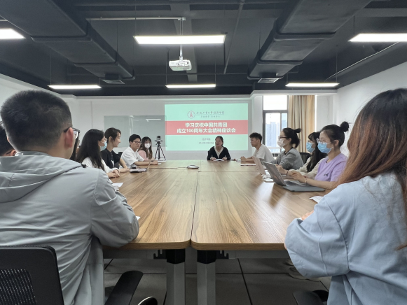 研讨会由院团委副书记、学工办副主任、研究生辅导员叶荣菁主持。会上,参会学员逐一发言,结合学习感悟和个人实践,畅谈心得体会。同学们认为,回顾建团百年的光辉历程,共青团员是在党的直接关怀和领导下诞生,共青团的初心和使命就是坚定不移跟党走,为党和人民奋斗,作为青年学生党员,要坚定不移听党话、跟党走,为实现民族复兴贡献青春力量。同学们表示,作为新时代的青年,要勇于承担时代赋予的历史责任,秉持坚定信念,饱含激情和青春朝气,志存高远,脚踏实地,不畏艰难险阻,努力成长为有理想、敢担当、能吃苦、肯奋斗的新时代好青年,用实际行动回应习近平总书记的期许。