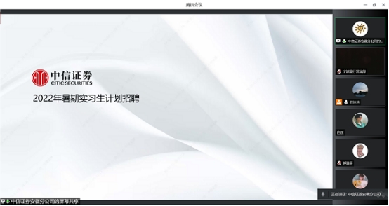 本次实习对接会邀请了中兴证券、国元证券、招商银行、宁波银行、九江银行、兆尹科技等11家优质企业参会,吸引了100多名本科生和研究生参加。各用人单位通过网络平台依次进行企业介绍、实习生招聘宣讲,同学们认真聆听,了解用人单位招聘需求,积极提问,气氛热烈。学院同时建立实习对接会联络群,为用人单位和学生搭建进一步交流的平台。