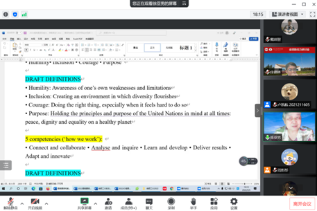 讲座主题涵盖“国际组织运行机制及核心文件”、“筑梦国际组织,加强全球胜任力培养”、“区域国别学概论”、“卓越领导力”、“国际多边谈判:理论与实践”、“国际公务员职业发展规则”、“国际组织招聘与面试”、“如何像中国大使一样用英语演讲”等。主讲人在讲座过程中结合自身的丰富实践和深刻洞察,为学生呈现精彩、独到的观点。增进学生对联合国等相关机构的运行机制和工作职能并提升相关岗位所需的胜任力的认识,从知识、价值观、态度、技能四个维度深化学生对全球胜任力的理解,引导学生思考中国智慧和中国力量在国际组织与全球治理中的作用,为后续的深入学习奠定基础。