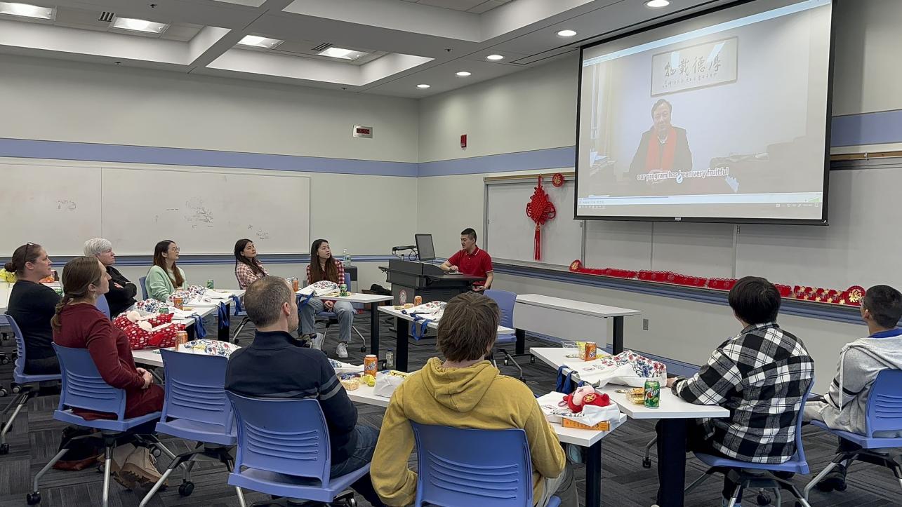 永利官网学生代表谢家鹏向克拉克大学的老师赠送纪念品礼包,包括灯笼、窗花、春联等中华传统饰品,以及卡套、钥匙扣、帆布袋等永利官网文创产品,并邀请参会人员共同品尝中国传统点心。通过学生生动的讲解,克拉克大学的老师对中国传统文化的丰富内涵表现出浓厚的兴趣,同时对我校与永利官网的文化底蕴以及精神理念产生了进一步的理解与认同。