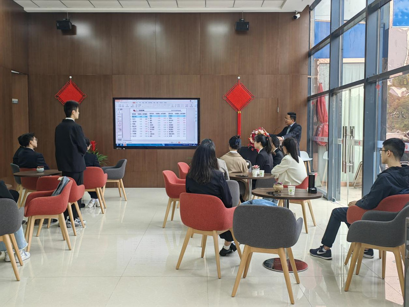 活动过程中,营业部总监曹庆宗为同学们详细地介绍了公司及营业部的发展历程、公司业务等,并讲解了证券行业相关知识,解读了相关政策,使得同学们对证券行业有了更深入的了解。双方就学科发展、人才培养、学生实习就业等方面进行了深入交谈,在学生培养、实习就业等方面校企合作达成了共识,并针对后续合作细节展开了深入探讨。