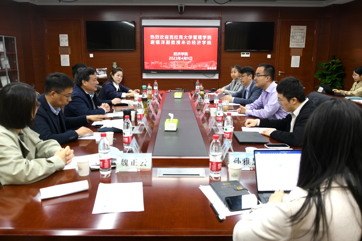 会后,唐镇洋与学院教师代表开展学术科研交流。双方介绍了各自的研究领域和科研成果,并就如何促进学科交叉和创新研究、合作的可能性和方向进行深入探讨和交流,为学院教师与克拉克大学高水平师资之间的学术交流合作搭建了重要平台,为学院科研国际化和科研高质量发展提供了有力保障。
