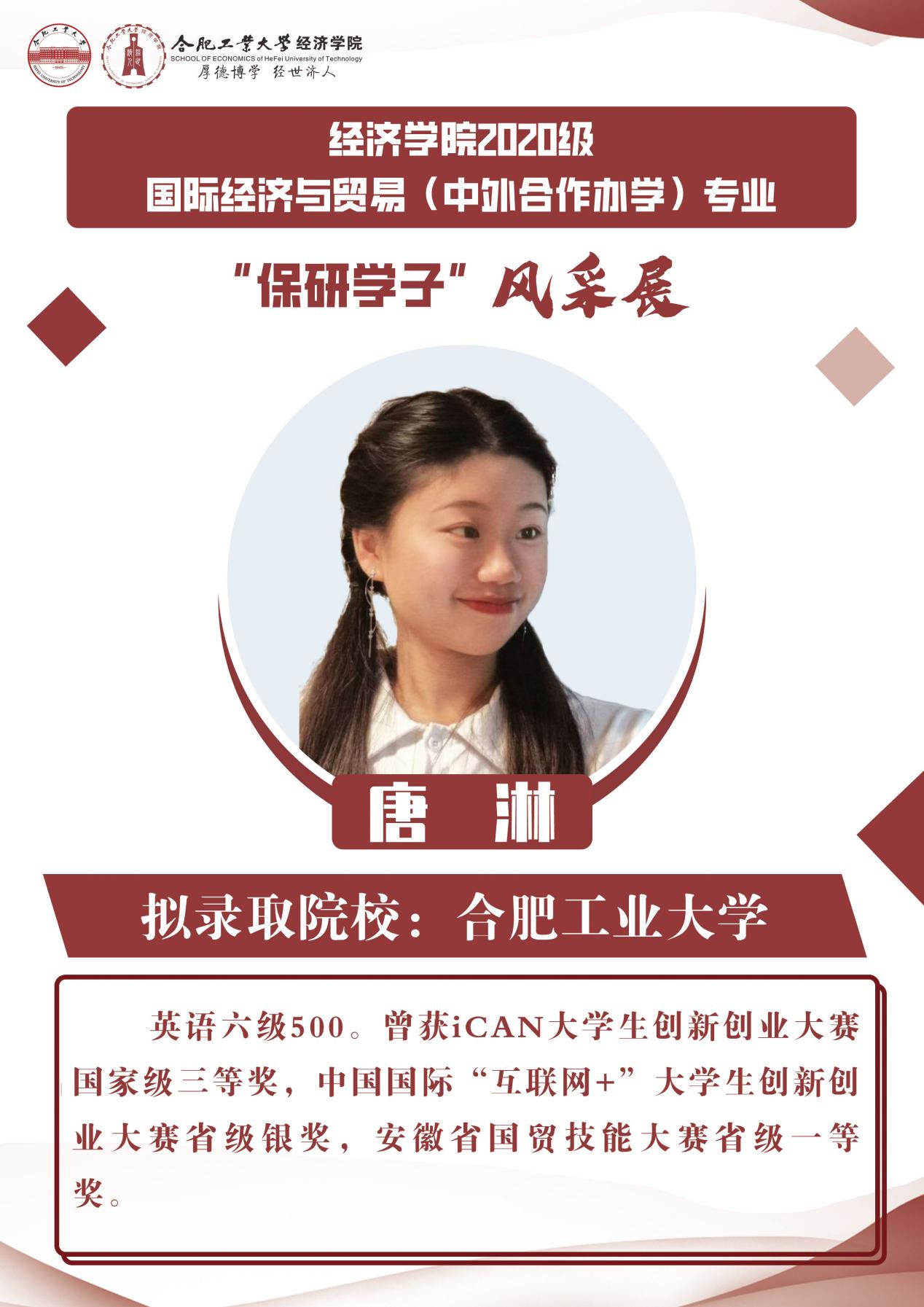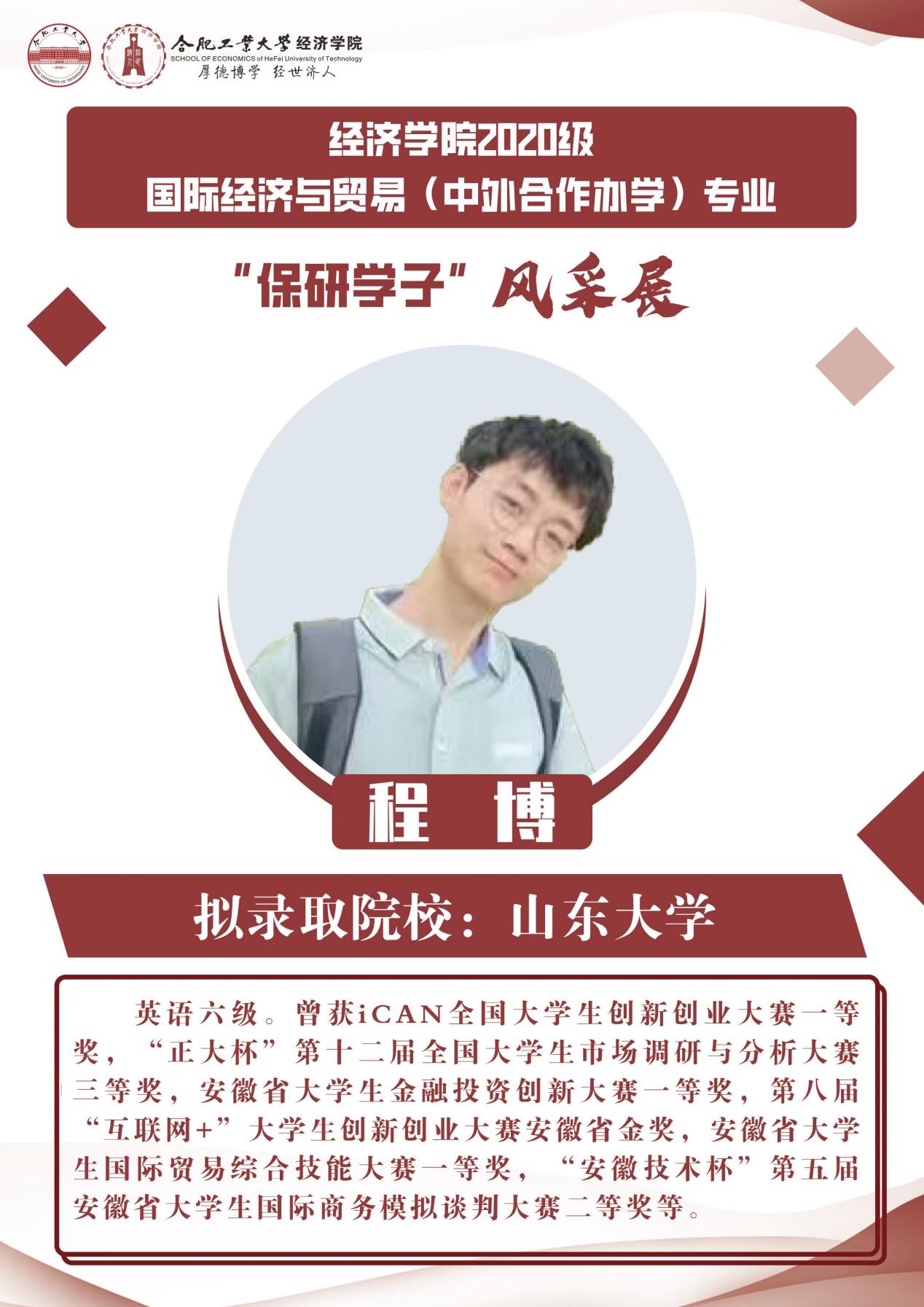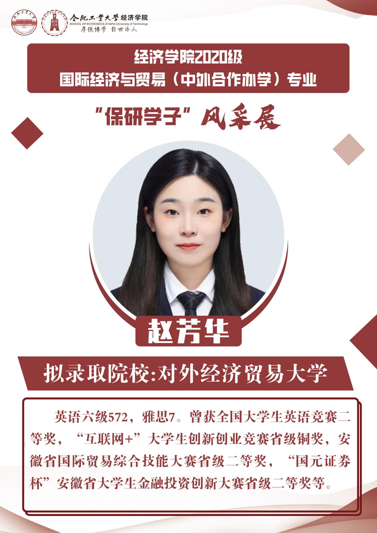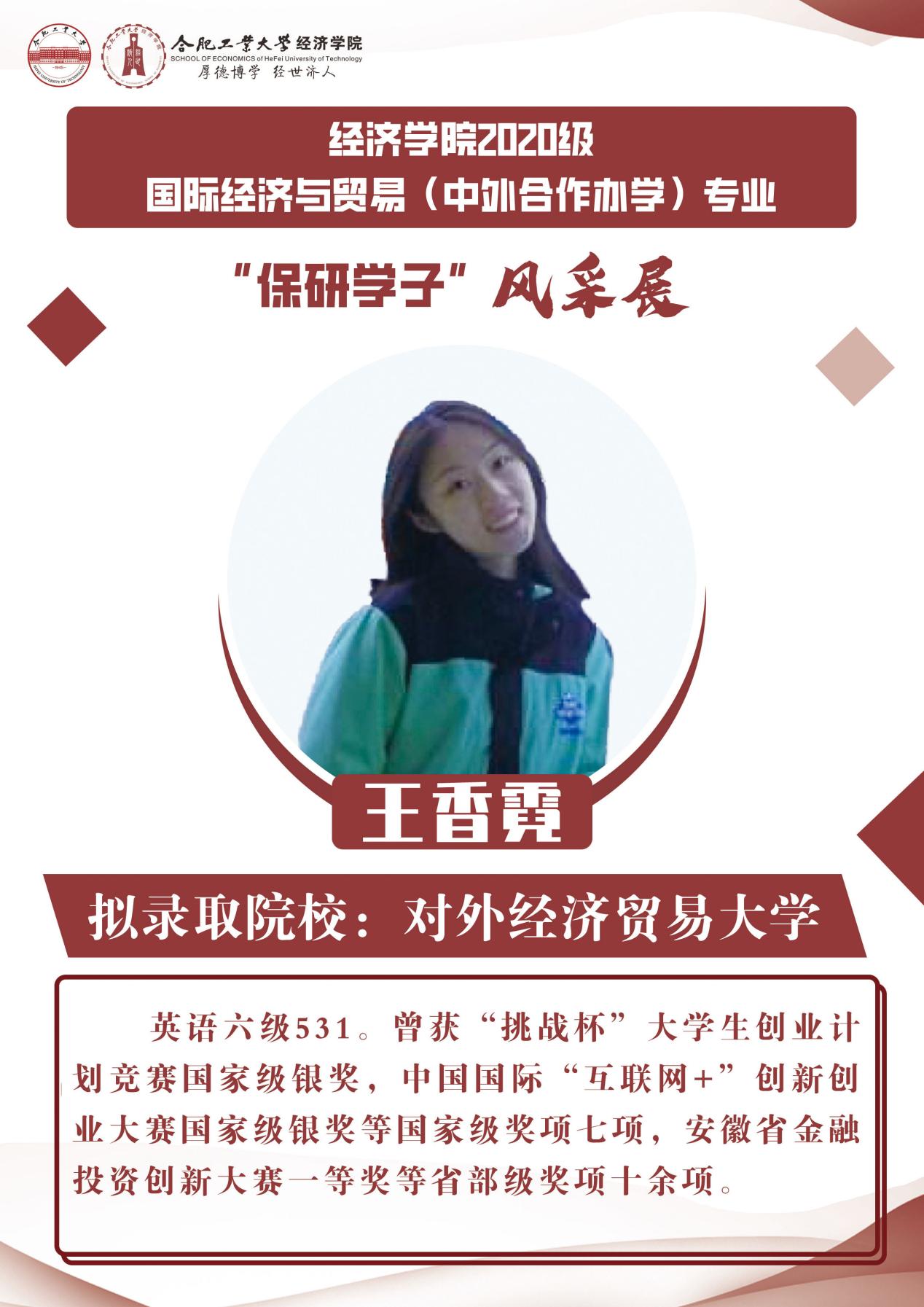 yL23411永利官网登录国际经济与贸易(中外合作办学)专业是国家级一流本科专业建设点。本专业注重将新科技与国际经济与贸易相融合,将贸易传统模式与数字贸易等新业态相结合,培养“强语言、精专业、通规则、能跨界”的高级复合型经贸人才。项目办学以来,人才培养成果呈现出“就业率高、就业单位质量高、升学率高、名校深造比率高、英语水平高”的“五高”显著特征。2020级国际经济与贸易(中外合作办学)专业学生中,15名推免生被中国人民大学、浙江大学、中央财经大学、对外经济贸易大学等国内名校拟录取。本期推文将带领大家共同领略2020级国际经济与贸易(中外合作办学)专业“保研学子”的风采。