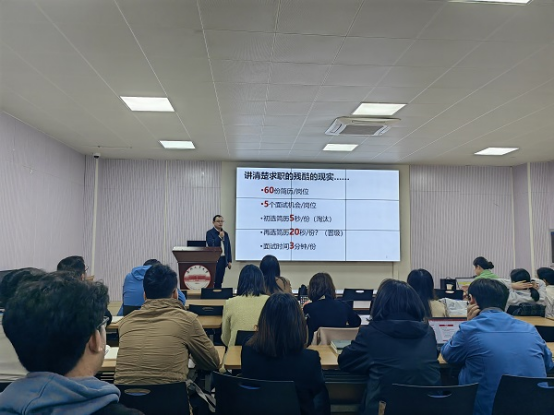 邢松老师介绍了简历的基本结构和内容,阐述如何指导学生结合岗位要求来撰写简历,结合案例介绍运用STAR法则来撰写工作经历的方法,分享如何通过量身定做、善用关键词和行为词、善用数字描述结果等方式突显竞争优势,最后介绍了简历的排版规则和指导完善简历的要点。