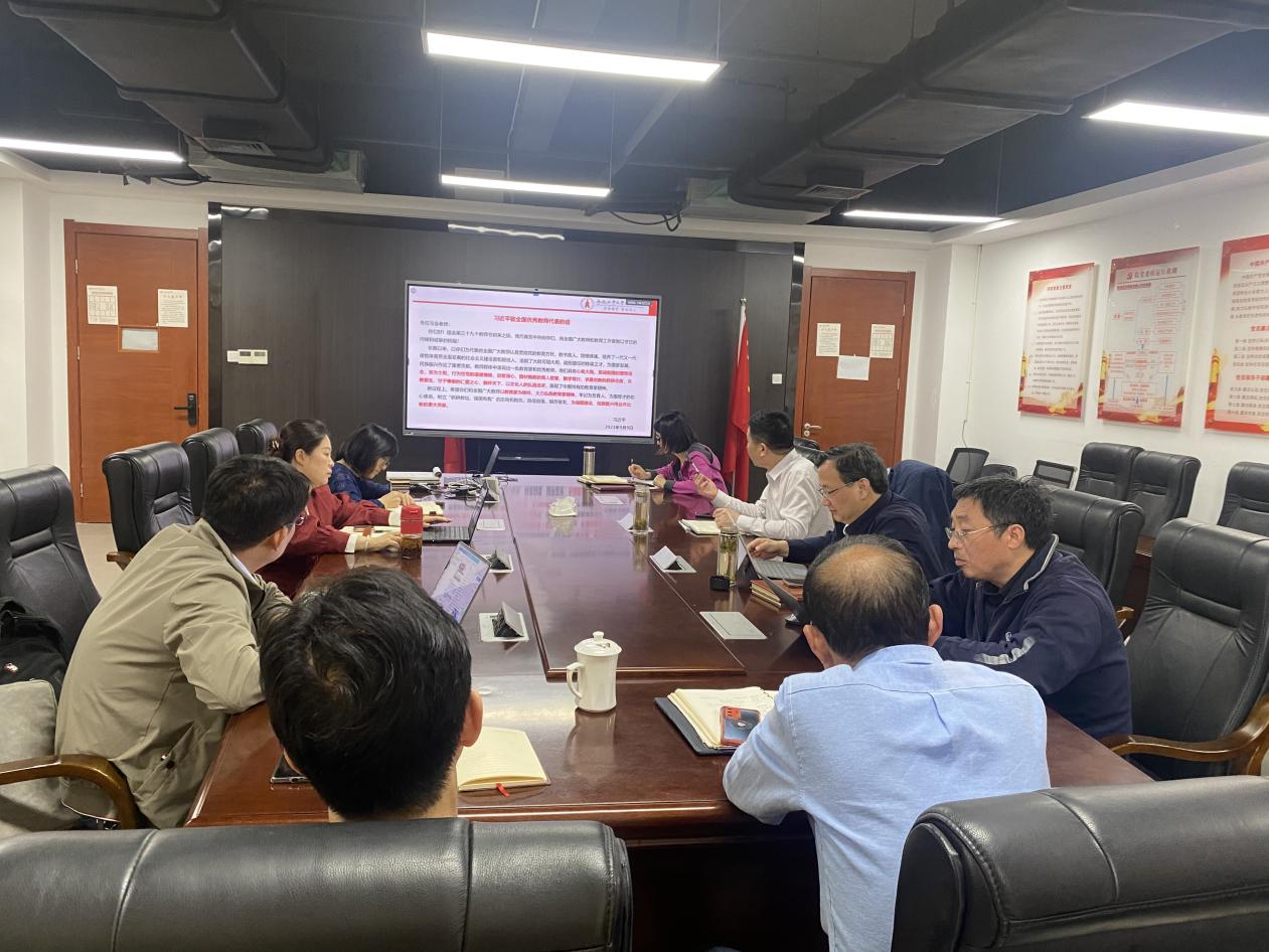 学院副院长庄德林传达领学相关内容,重点学习了《习近平致全国优秀教师代表的信》,以及全国优秀教师代表座谈会讲话精神,共同观看了全国优秀教师代表“教育家精神”2024年巡回宣讲活动报告视频之周荣方同志宣讲报告。